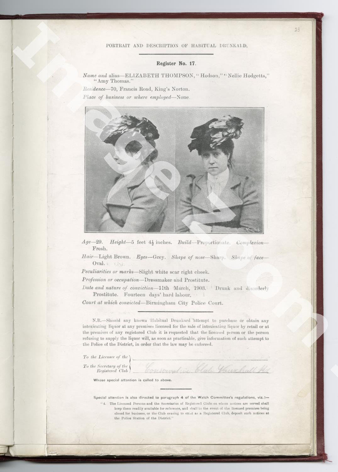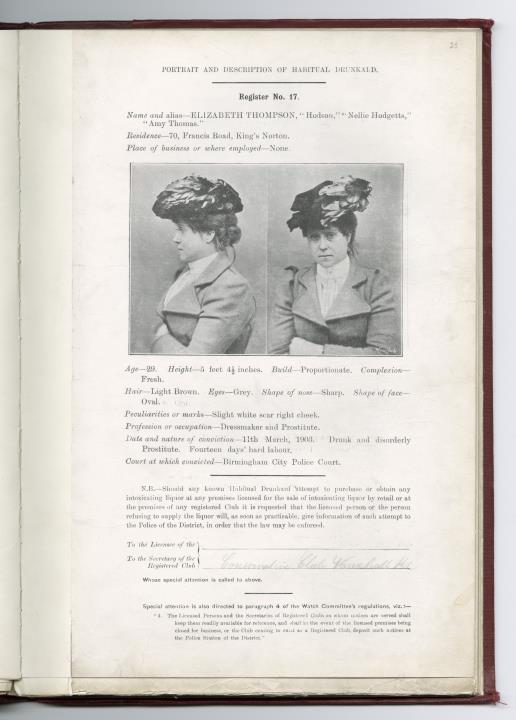 Description:Elizabeth Thompson convicted under the Licensing Act 1902.