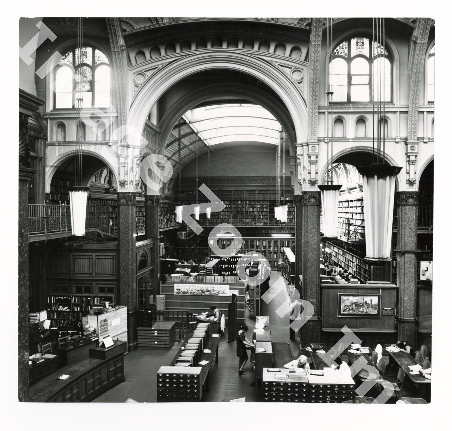 Description:A photograph of Birmingham Central Library main reading room, taken by the Public Works Department in 1971.