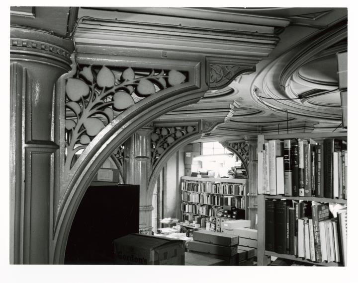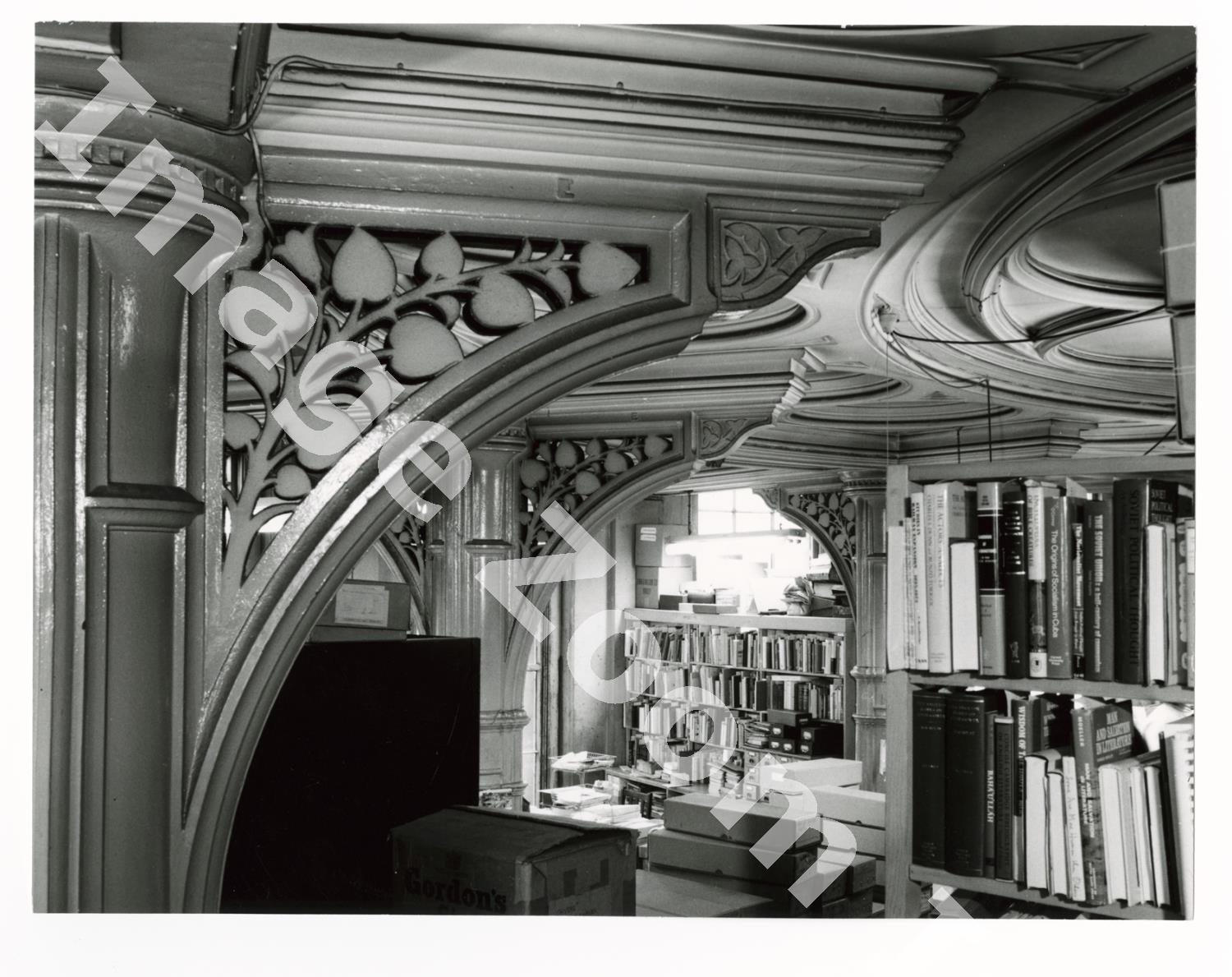 Description:A photograph of the cataloguing floor of Birmingham Central Library. Taken by the Public Works Department in 1971, the photograph shows the building's ornate metal columns and other architectural details.