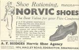 Advert for Norvic Shoes as sold by A.F. Hodges of Hagley Road. The proprietor is listed as being Dorothy Hamblin. Shoes were subject to rationing during and after the war and had to be paid for by coupons ...